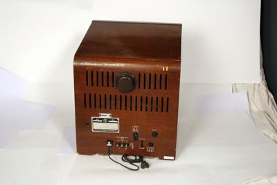 Sotto allo schermo si ha una rete in tessuto e delle liste in legno a protezione dell'altoparlante. Ai lati dell'altoparlante sono presenti 4 comandi a manopola in bachelite con le seguenti funzioni: sincronismo orizzontale e verticale, contrasto/luminosità, canale/sintonia (canali preselezionati da 1 a 10), tono/volume/interruttore.